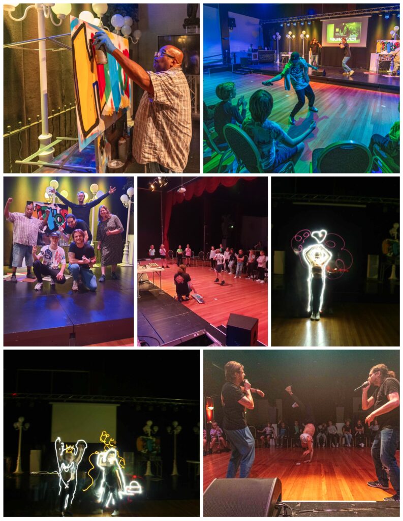 Themadag met workshops dansen, rap, beats maken, video en graffiti.